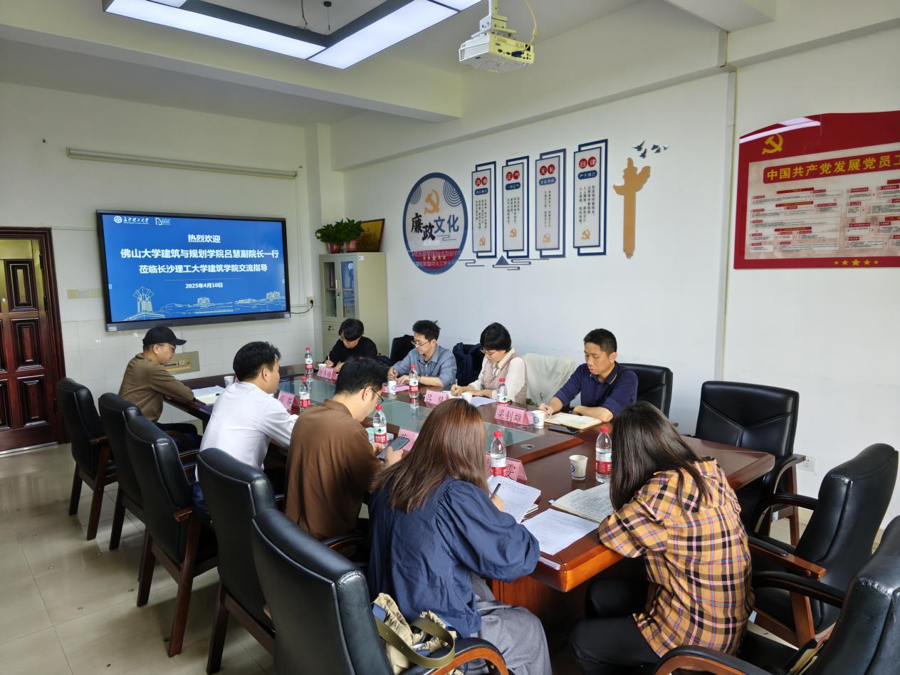 4月10日上午,佛山大学建筑与规划学院副院长吕慧一行受邀莅临长沙理工大学建筑学院进行调研交流。长沙理工大学建筑学院党委副书记肖义慧、实验中心主任蒋毅、风景园林系党支部书记彭芬、建筑系副主任吴世海、城乡规划系副主任胡雯出席了本次交流会。双方聚焦专业建设、学科发展、实验室建设、人才培养方案修定等领域深入探讨。